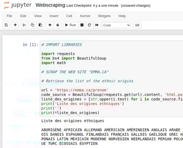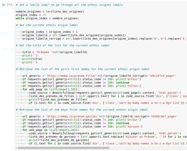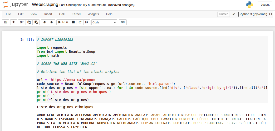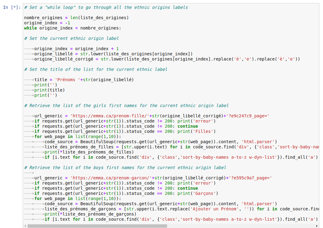Using BeautifoulSoup, I have scraped the web site "Emma.com" in order to classify per ethnic origins thousands of first names.