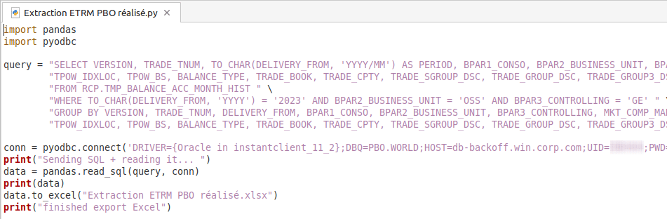 Using Pandas and Pyodbc, I have automatized the data extraction from an AWS database.