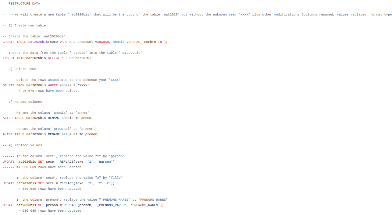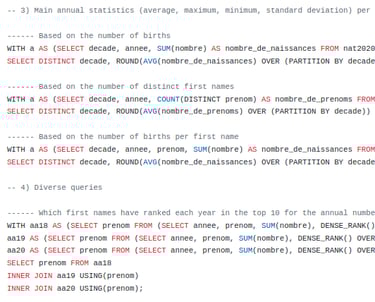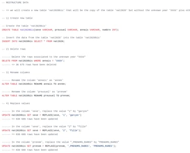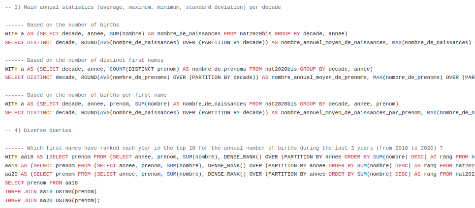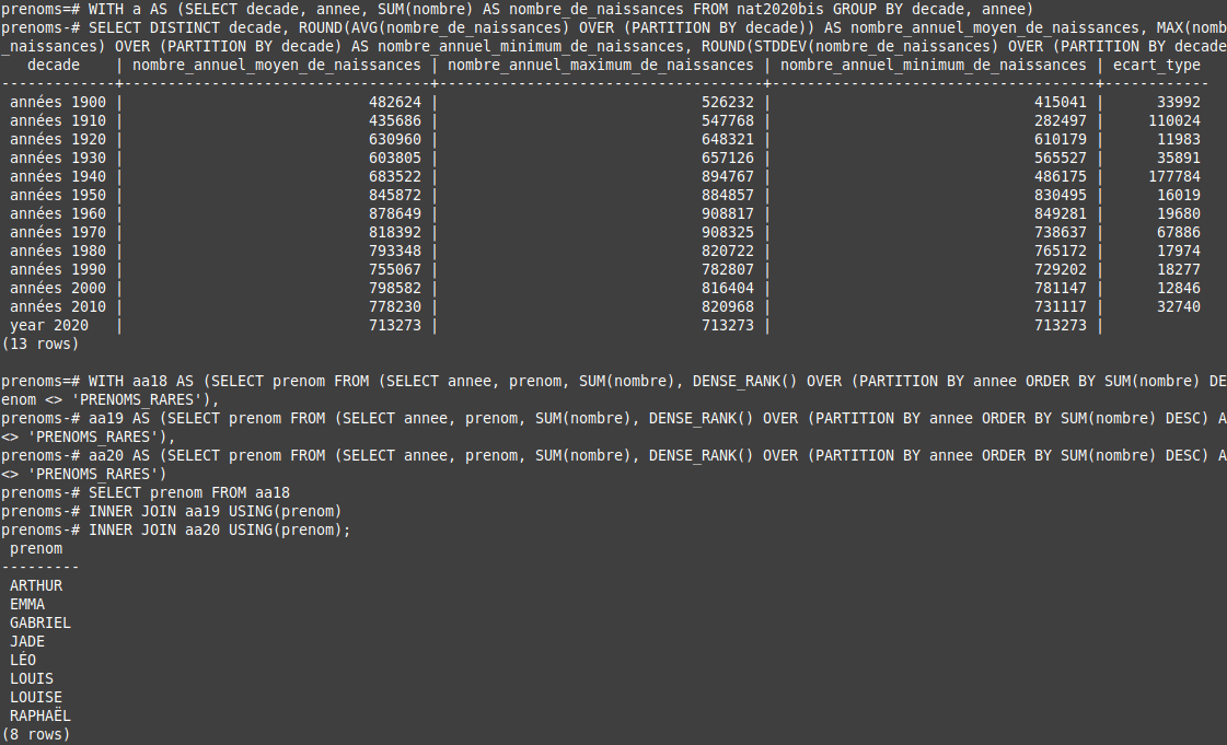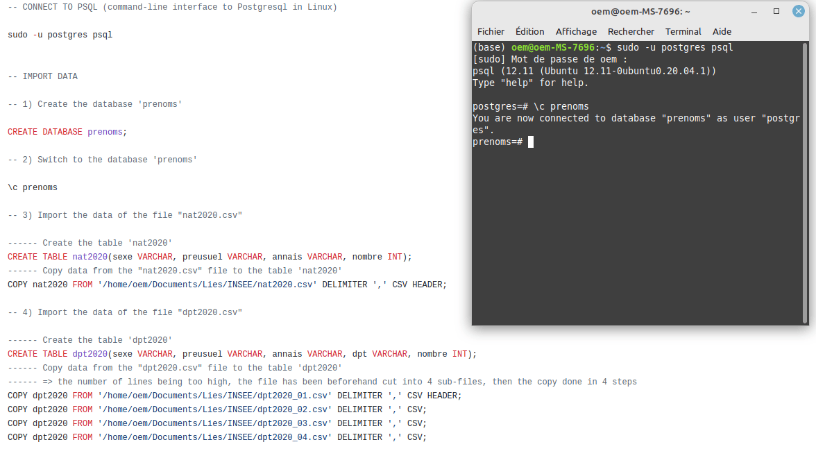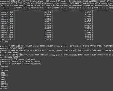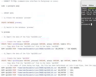 Using Postgresql in the Linux Terminal, I have created and structured a database to explore the data provided by the public organism INSEE regarding the first names given tho the new borns in France since 1900.